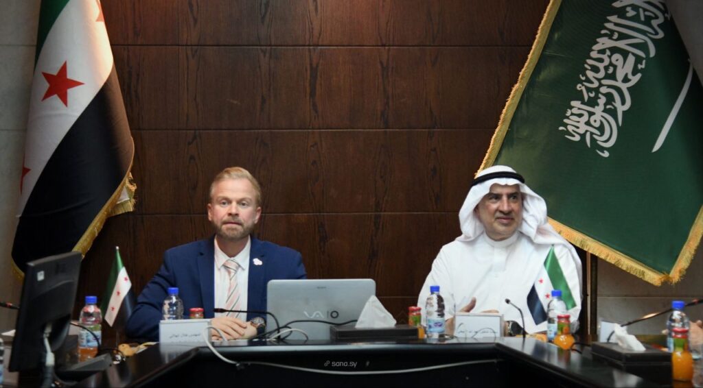 لمناقشة الفرص الاستثمارية والتعاون المستقبلي في قطاعات التعليم والاتصالات والتجارة، عقد وفد حكومي سوري اليوم جلسة مباحثات مع وفد سعودي وصل أمس إلى مطار دمشق الدولي، يضم عدداً من رجال الأعمال والمستثمرين، لبحث آفاق التعاون الاقتصادي بين البلدين، وذلك في مبنى هيئة الاستثمار السورية.