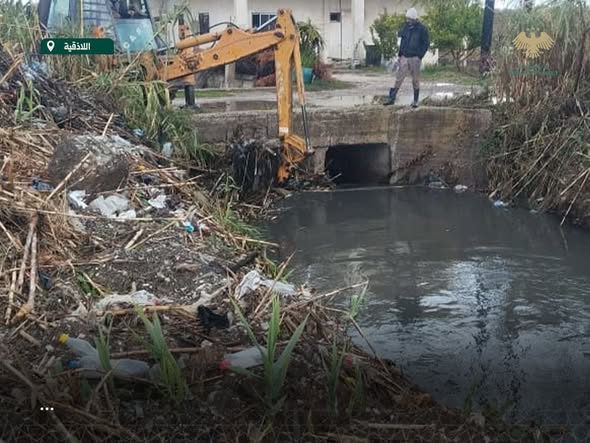 مديرية الموارد المائية في اللاذقية نفذت استجابة عاجلة شملت تعزيل القنوات الرئيسية وفروعها، وإزالة العبارات المخالفة التي كانت تعيق انسياب المياه. كما جرى تنظيف السواقي والأنهار في عدة مواقع، منها جسر السكيدالي ونهر عين شقاق، بهدف الحد من مخاطر التجمعات المائية وحماية الأراضي الزراعية من الغمر.
