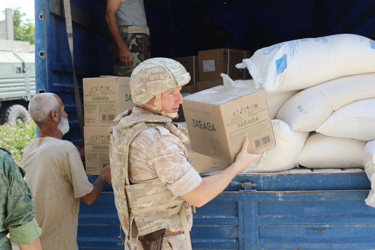وذكر الضابط الروسي أن المساعدات تم توزيعها على عائلات الشهداء والجرحى الجيش العربي السوري في قرية كلماخو، وذلك لتخفيف الأعباء عنهم.